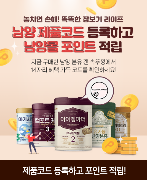 - 적립 포인트는 남양 패밀리 사이트에서 사용 가능합니다. (단, 1단계에 포인트 적용 불가)