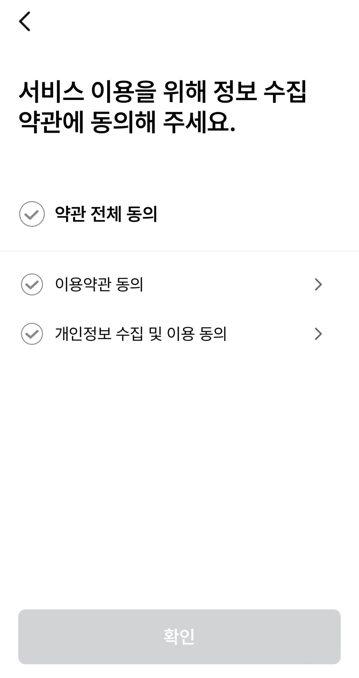 ⑥ 서비스 약관 동의 후 확인 버튼을 눌러줍니다.