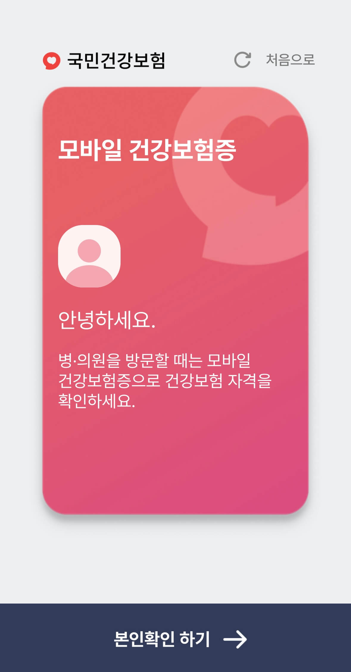- 모바일 건강보험 증 등 고유 정보와 성명이 함께 기재 되어 있는 신분증