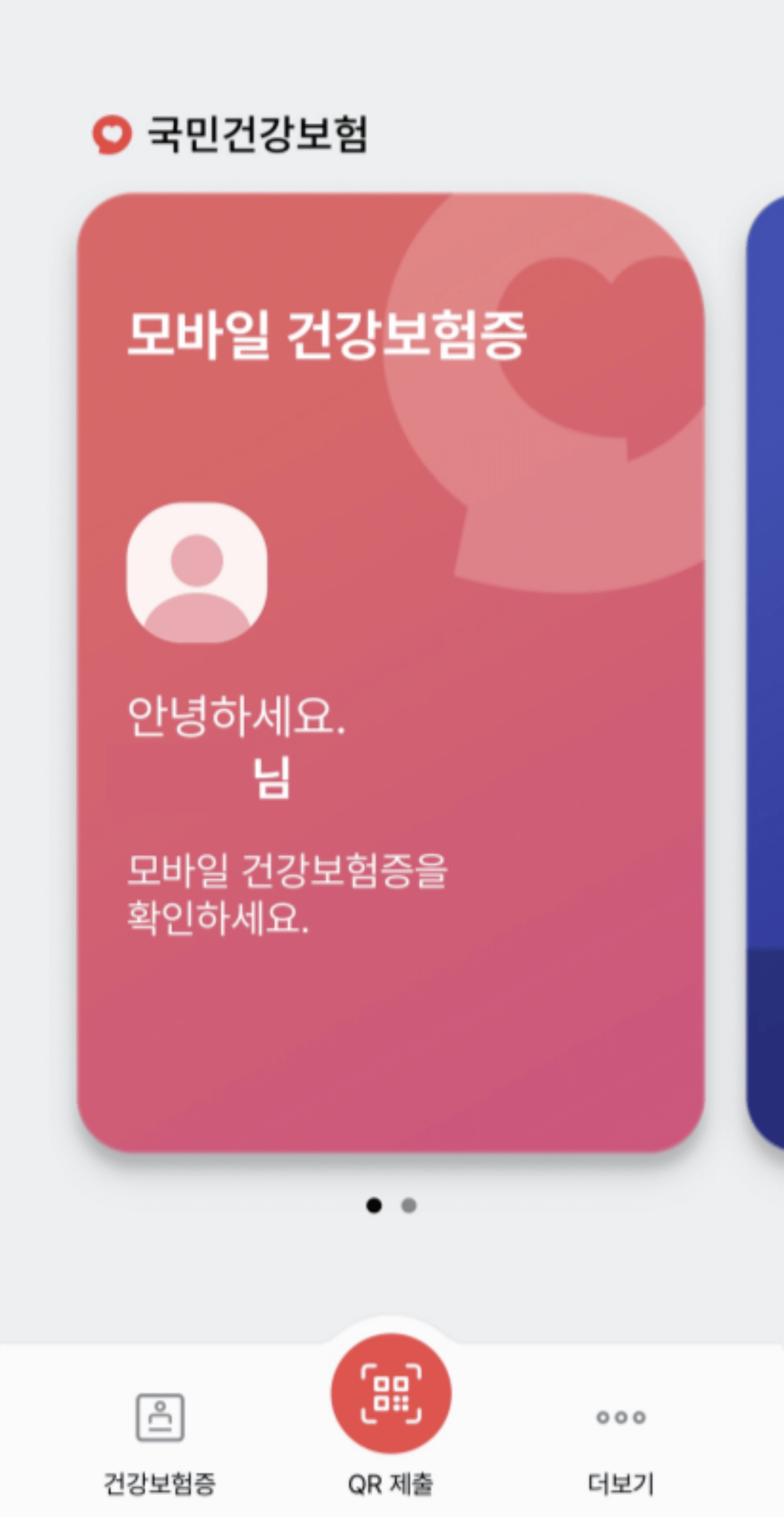 ⑩ 아래와 같이 모바일 건강보험증이 발급완료가 되어 이름이 표시가 되고 병원에서는 중간 QR제출을 통해 본인 확인이 가능해집니다.