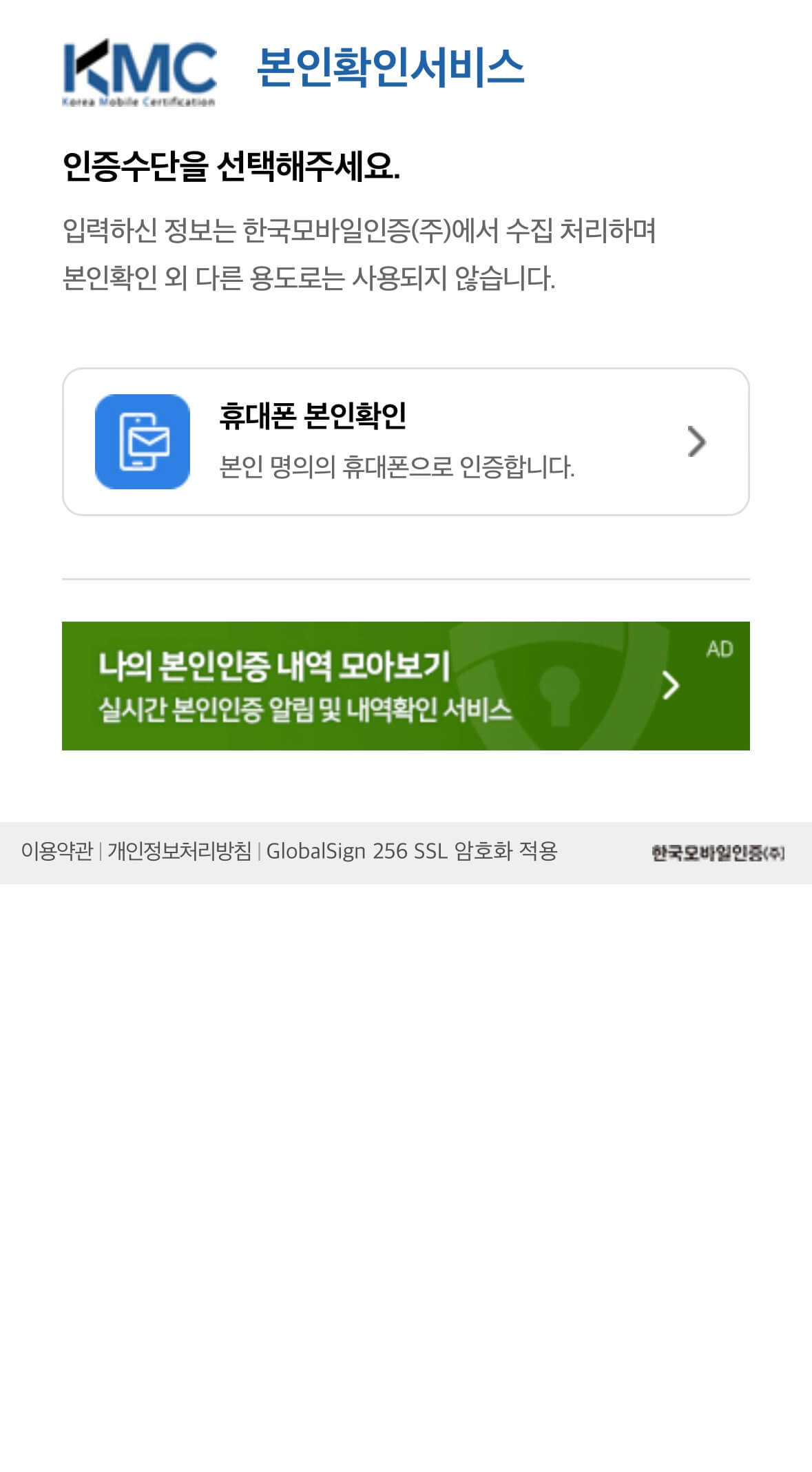 ⑧ 문자를 통해 본인명의 휴대폰을 인증하고 pass 또는 문자를 통해 본인인증을 해줍니다.