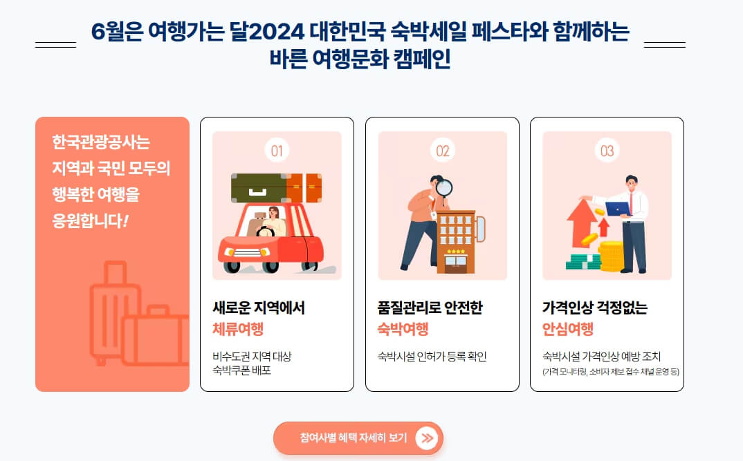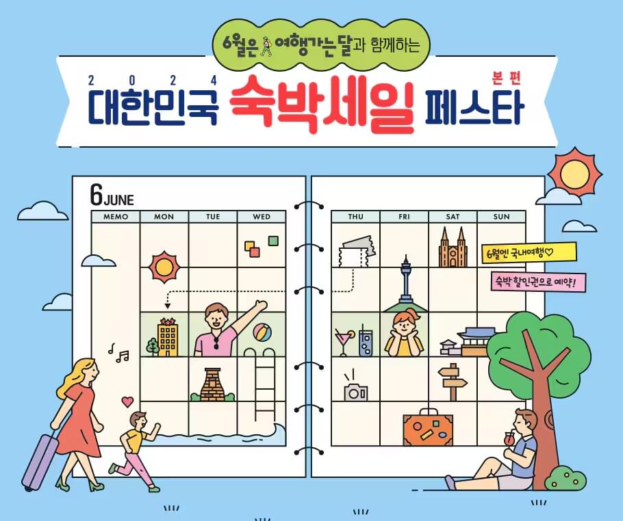 멀리 여행을 떠나게 되면 자연스럽게 숙박을 하게 되는데요. 숙박 경비 부담스럽지 않으셨나요? 6월은 여행가는 달로 숙박 할인권을 받을 수 있다고 합니다. 선착순으로 발급 되며 놓치지 말고 3만원 저렴하게 숙박상품을 잡아보세요.