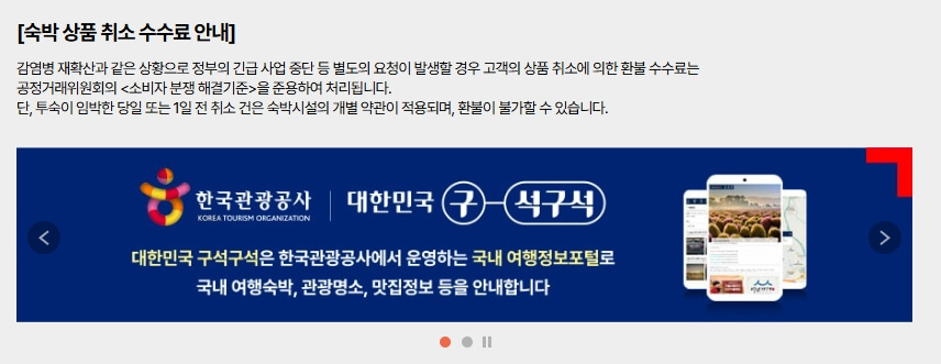- 타인에게 양도가 불가능 합니다. 또한 본 사업 참여사 온라인 채널을 통하지 않고 중고거래 등으로 구매한 숙박 할인권에 대해서는 사용할 수 없습니다.