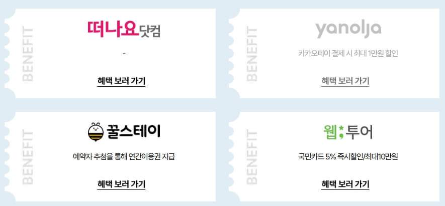 참여 온라인 여행사를 이용하여 할인권 사용이 가능하며 1인 1매로 선착순 사용 가능하니 놓치지 말고 사용해보시기 바랍니다.