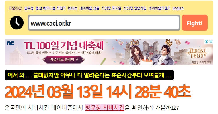 저는 티켓팅 시 네이비즘이라는 서버 시간을 알려주는 사이트를 이용합니다.